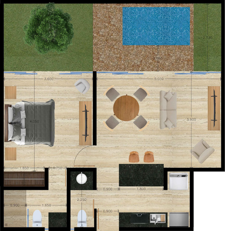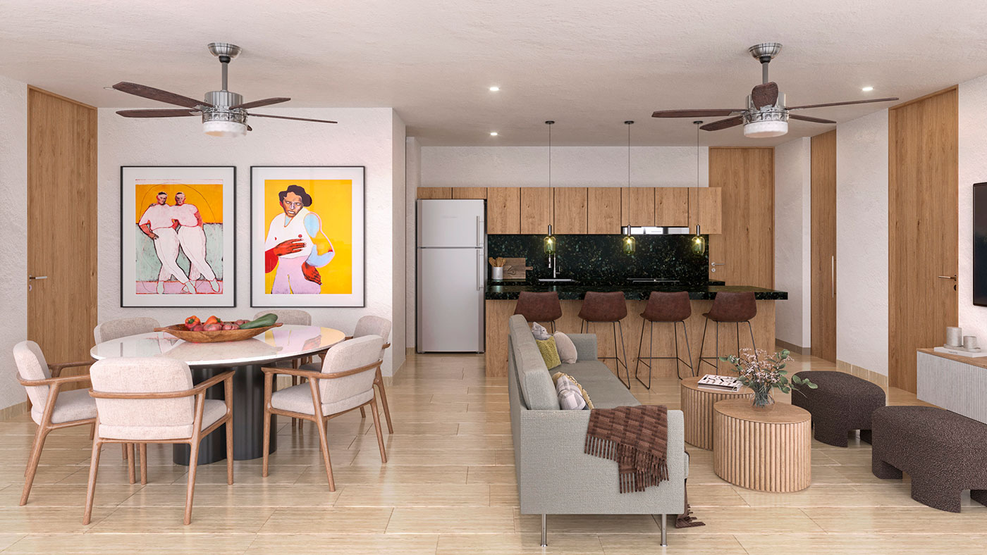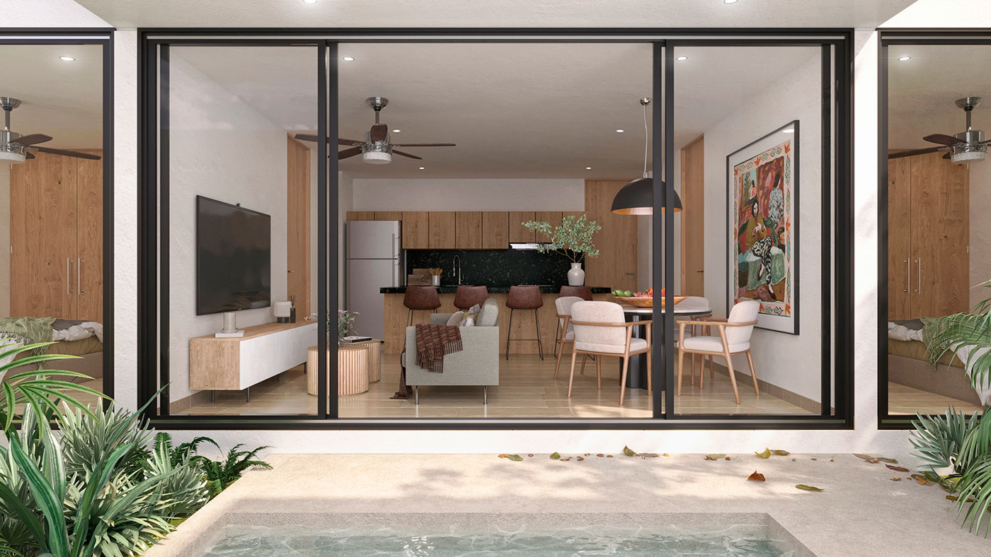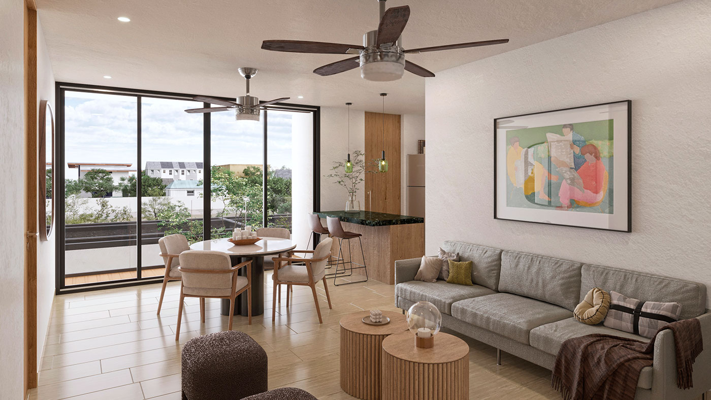 Desde 54.68 m² interiores, 5.51 m² de terraza techada, 25.67 m² de jardines y terrazas privadas, 12 m² de estacionamiento privado techado
