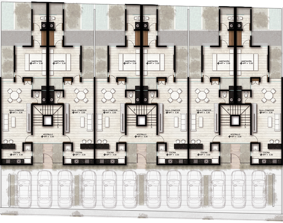 ● Piso porcelánico para acceso tipo madera o similar en acceso