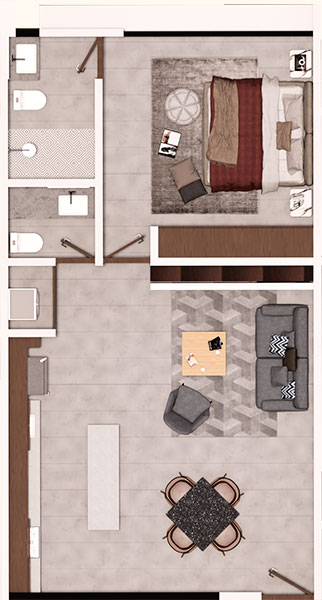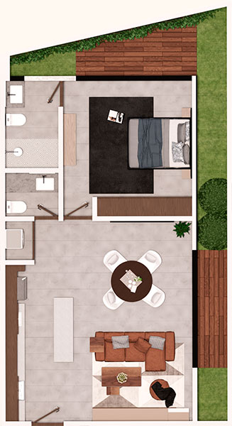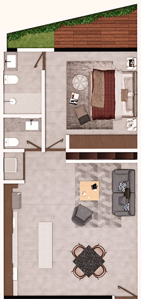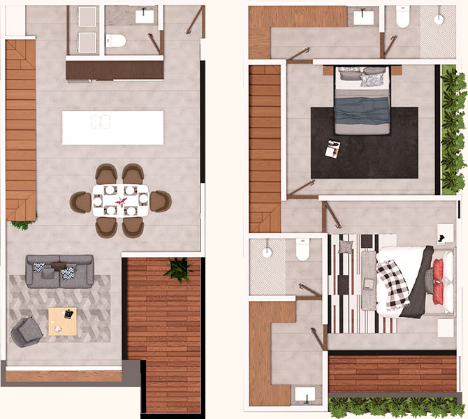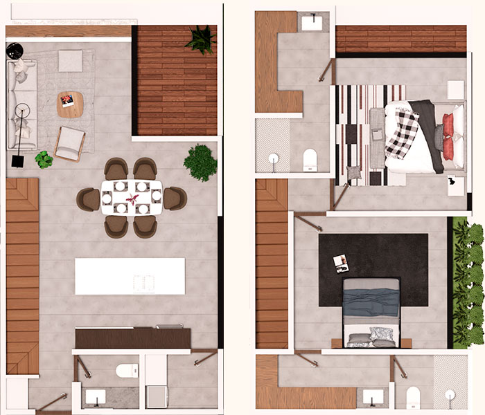 Desde 114.40 m2 interiores, desde 9.97 m2 de terrazas techadas, 24 m2 de estacionamiento privado no techado.